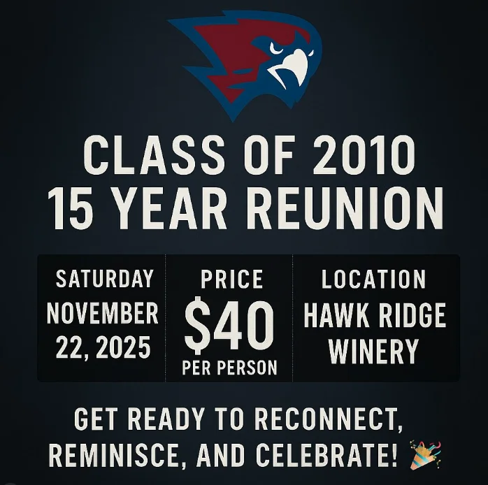 15 Year Reunion is coming 11/22/25, $40 per person @hawkridgewinery