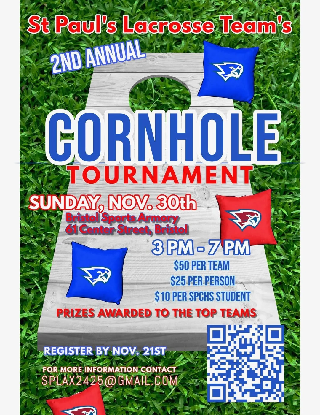 Join us for the 2nd Annual Cornhole Tournament to support SPCHS Lacrosse. Have fun and work off that turkey! Register today https://forms.gle/35TbPB8CBjbRv44M8