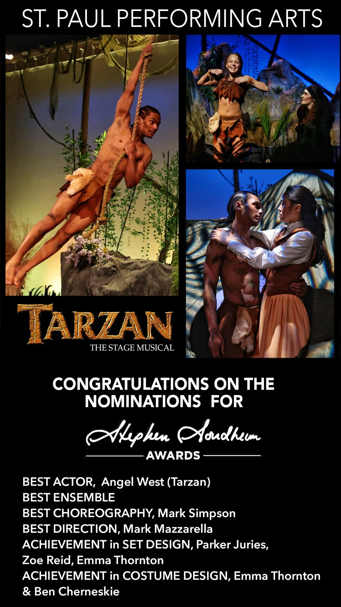 The cast of Tarzan, garnered 6 Nominations for the CT Sondheim Awards. Congratulations to the nominees and the entire cast and crew for a fantastic job!