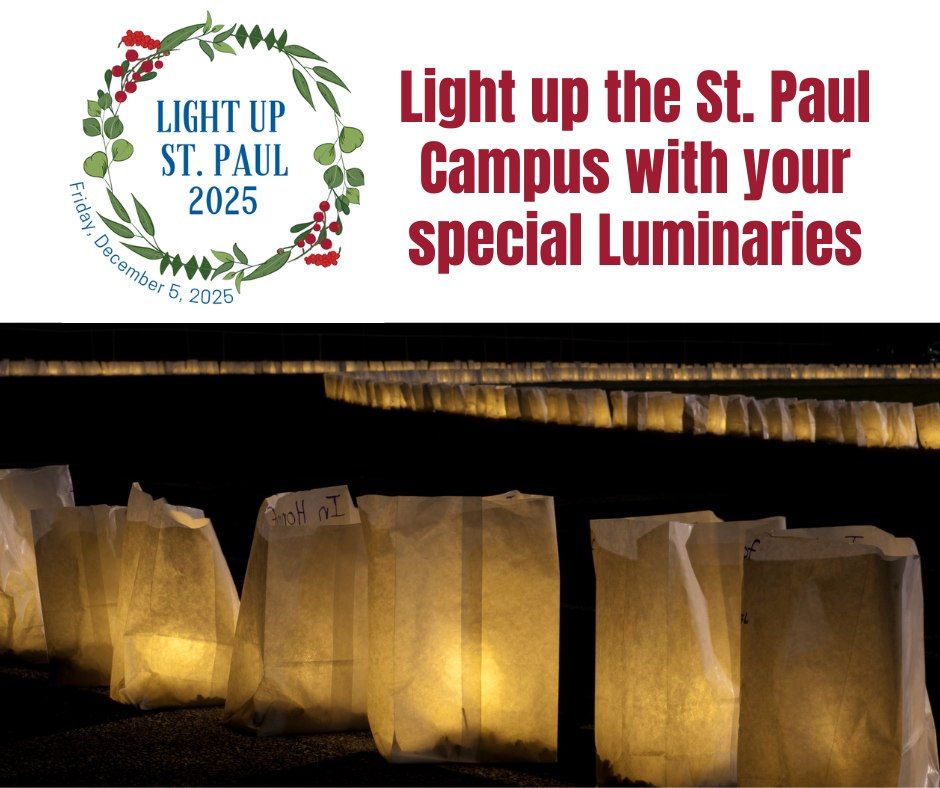 Luminaries will light up our campus on December 5 at our Light Up St. Paul event.