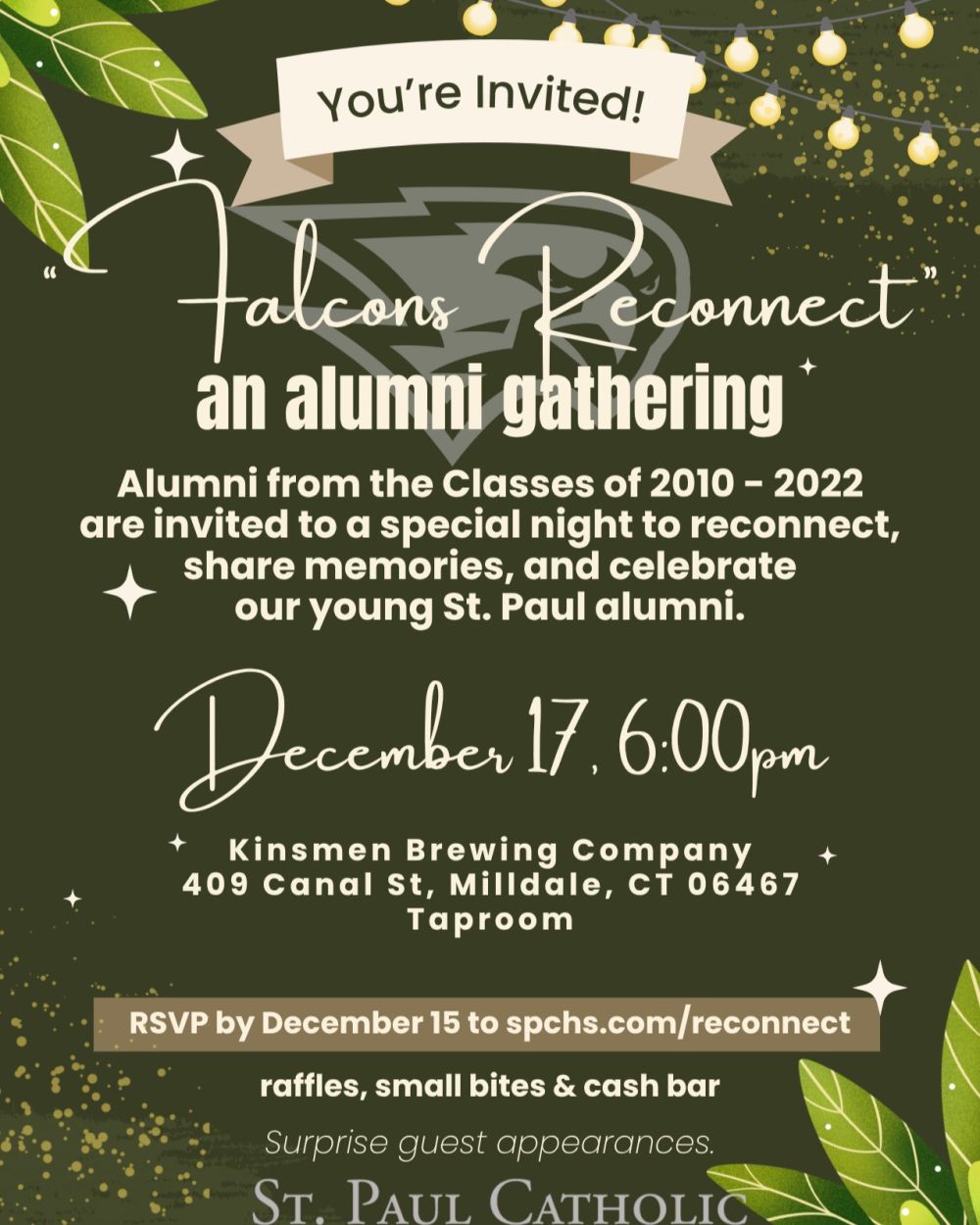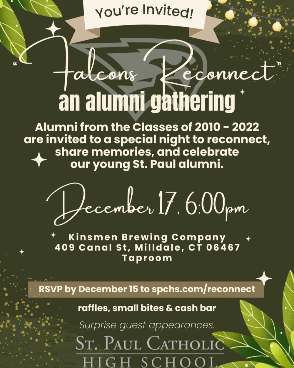 Alumni from classes 2010-2022, come join us as we reconnect tomorrow evening at Kinsmen Brewing Co. in Milldale from 6-8pm