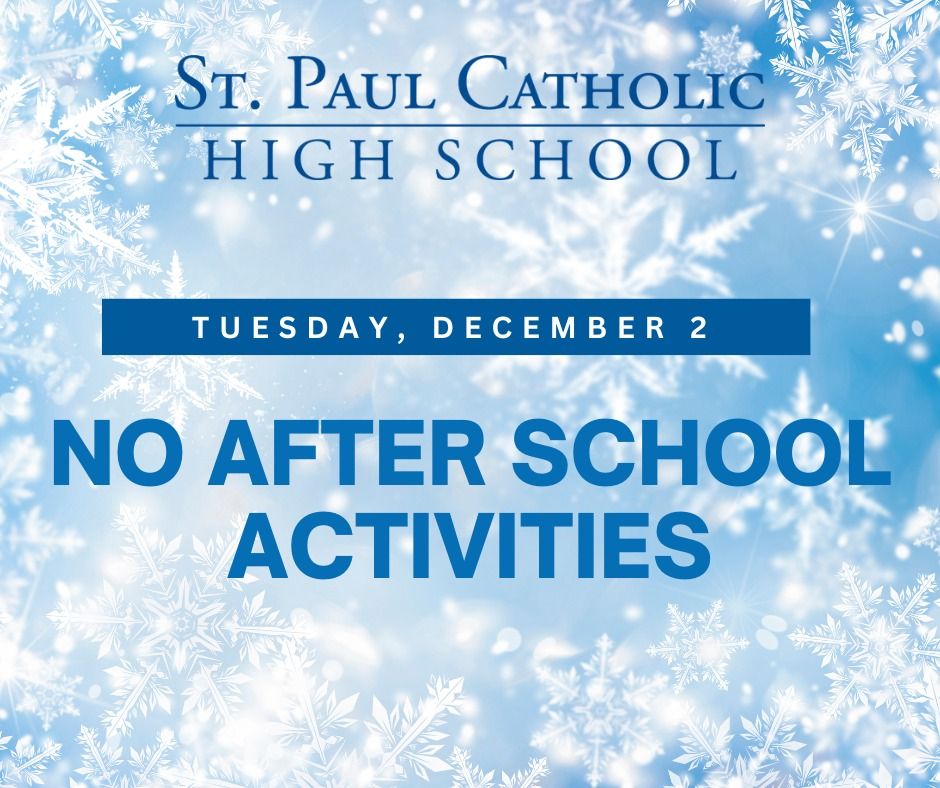 Due to weather conditions all after school activities for St. Paul have been cancelled today. Stay warm, stay safe.