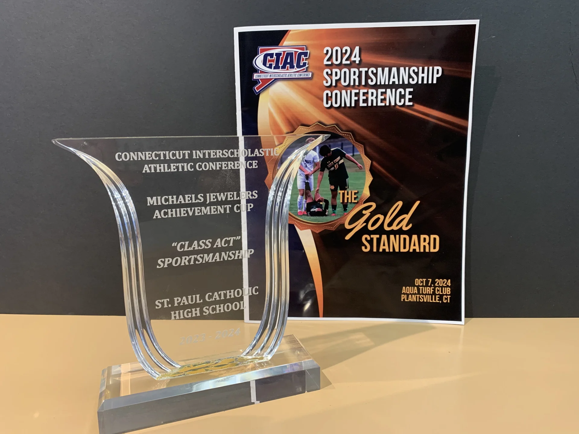 At this conference, the CIAC honors schools that have demonstrated exemplary conduct under their Class Act Sportsmanship program by awarding them the Michaels Jewelers Achievement Cup (often shortened to “Michaels Cup”).